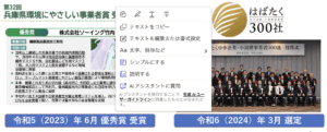 HOME » » 兵庫県環境にやさしい事業者賞優秀賞:はばたく中小企業・小規模事業者300社選定